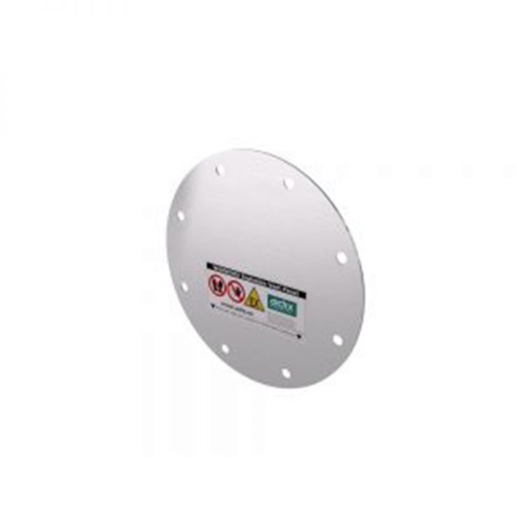 Dispositivo circular para la protección contra explosiones (especializado para polvo orgánico y metálico hasta St2), basado en la liberación la sobrepresión de explosión a zona segura, evitando así que se exceda la resistencia de diseño del recipiente. Capaz de llegar a temperaturas de trabajo desde los -40 grados hasta los 70.